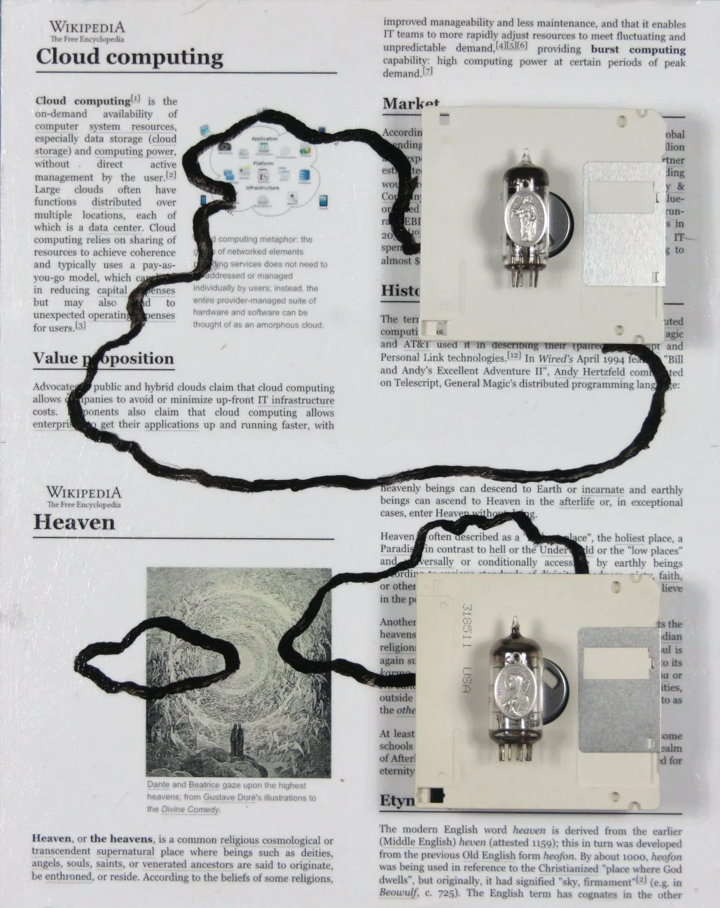 This series of artworks focuses on the intersection of society and technology. The ideological motifs that motivate each artwork spring from my personal history and tie into larger cultural concerns. My father was a mathematician who was involved in computers and coding before the rise of personal computing in the 1980s. As a child, I was always surrounded and influenced by my father’s obsession with computers, science, and logic. I was raised to have respect and understanding for these topics, though my interests lay elsewhere. As the years progressed I saw the rise of technology from a new convenience to a pervasive, supremely powerful force in everyday life and the economy. This art series explores my perceptions of the spiritual and economic impact that the digital revolution has on humanity.